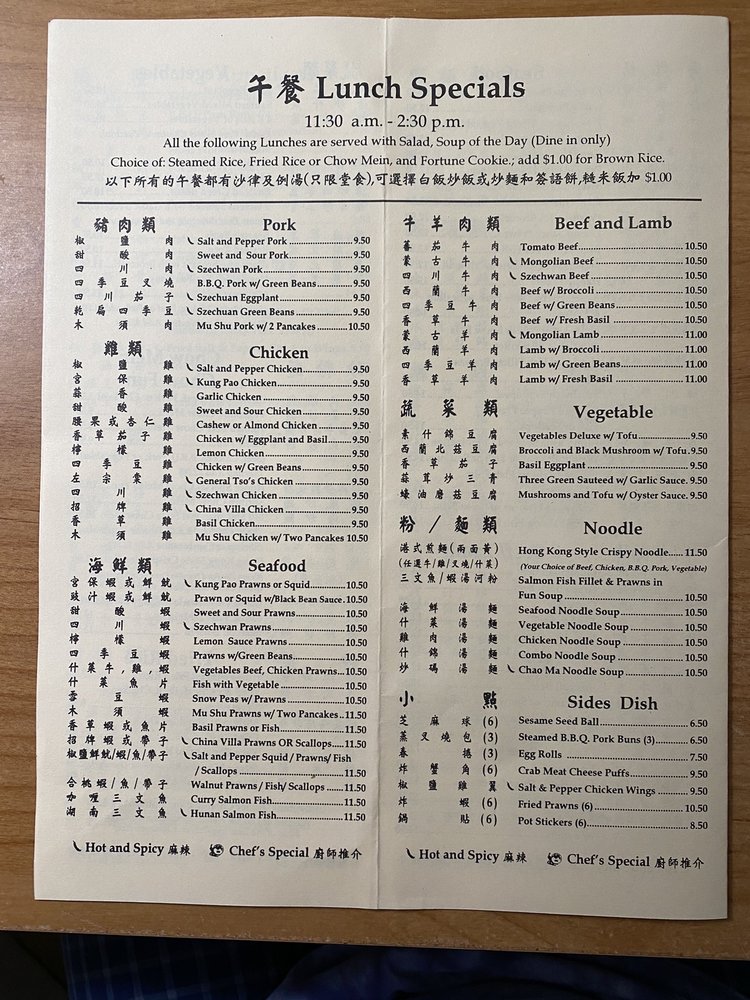 China Villa, a Chinese restaurant located in Alameda, CA, offers a wide range of dishes that cater to various preferences. From appetizers like Sesame Seed Ball Pastry and Fried Squid to mouth-watering entrees such as Kung Pao Chicken and Mongolian Beef, the menu boasts an array of flavors. Customers praise the beautiful waterfront views and quick service, making it an ideal spot for lunch or dinner. While some dishes may be hit or miss, the generous portions ensure leftovers for days. With a focus on providing a seamless dining experience, from online ordering to efficient staff, China Villa presents itself as a reliable and convenient choice for Chinese cuisine enthusiasts. Whether seeking a casual meal with friends or a family-friendly gathering, this establishment offers something for everyone.